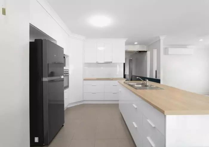 - Stylish modern kitchen (newly fitted in 2021) with timber benchtops, double fridge space and quality electric oven & stove