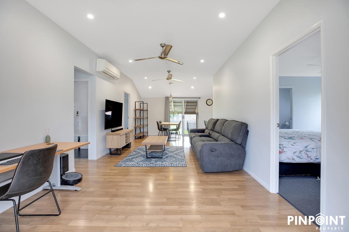 - To the rear of the home you’ll find a super versatile separate donga which offers split A/C, ceiling fans, & carpeted flooring. A small kitchenette is also featured in here (This is not pictured)