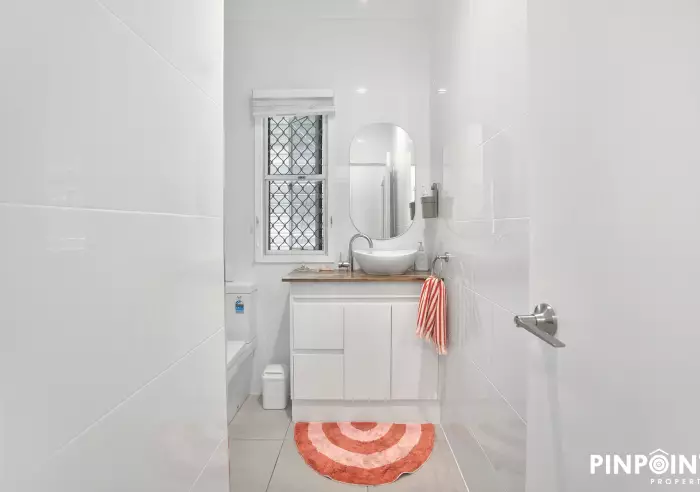 - Stylishly renovated bathroom with walk-in shower and modern vanity