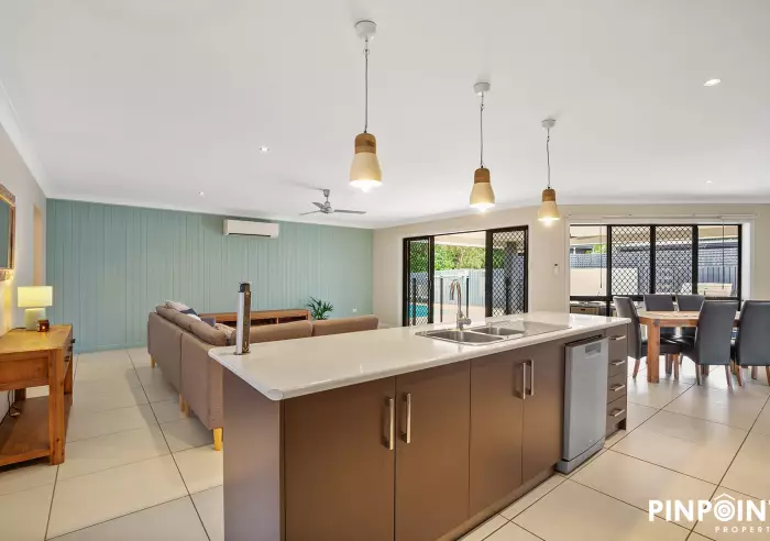 - Its free-flowing interiors deliver the perfect setting where the family can come together with its open-plan kitchen overlooking the expansive dining/living zone & large outdoor entertaining area. The generous separate lounge with replaced timber look vinyl planking is an ideal space to escape, being away from all the activity in the centre of the home