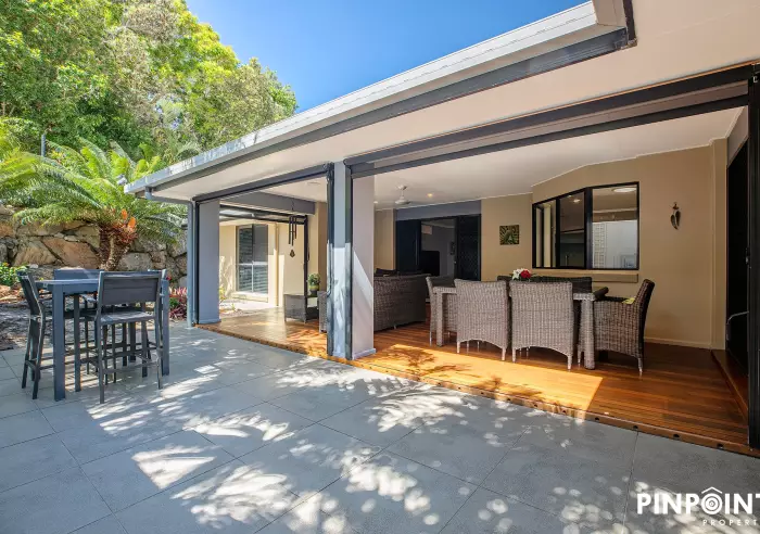 A place you’ll love to come home to each and every day…this beachside haven encourages you to slow down, relax and disconnect from an ever-increasing busy world. From the moment you arrive, you will know that 31 Portside Place is a truly unique and special property. Occupying an expansive 909m2 parcel of land in a quiet, family-friendly cul de sac, this immaculately presented and perfectly positioned home is just three houses back from the park with direct beach access, nestled against a beautiful tropical backdrop helping to create a wonderfully private alfresco zone ideal for entertaining!