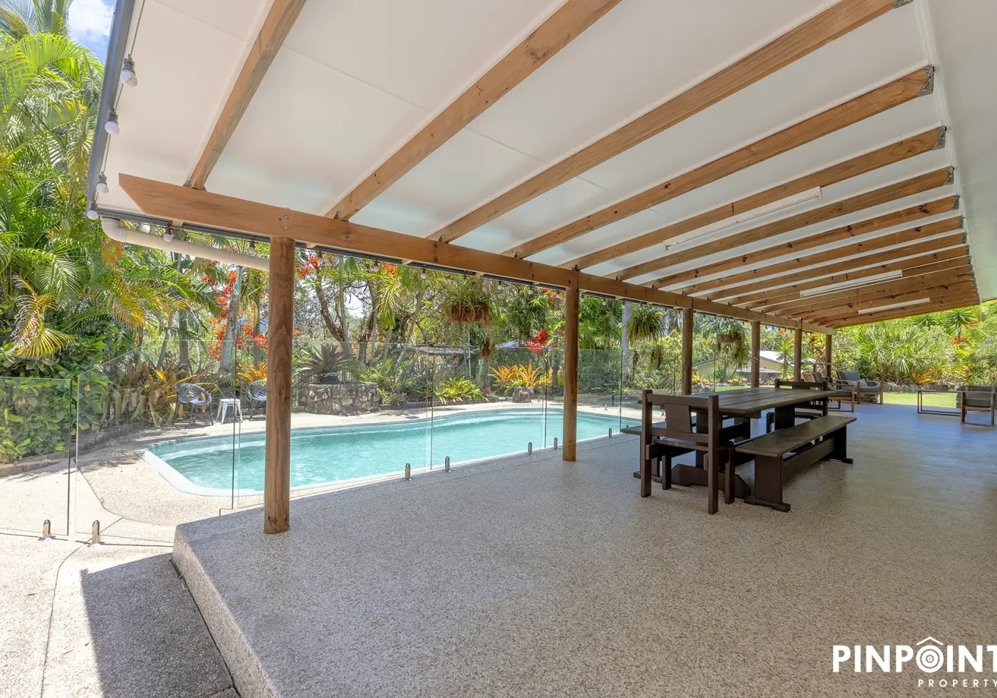 Offering a modern, 4 bedroom family home privately positioned on this 1.95 hectare property, along with the full outdoor package including a stunning freshwater pool amongst resort-style tropical surrounds, a huge 12 x 12 shed with 3.5m high clearance that is ideal if you need to store a motorhome, caravan, big boat or a car hoist, plus access in and out of the shed will be a breeze with a generous concreted loop servicing the shed and car parking to the property…would also make a great bike or scooter circuit for the kids.